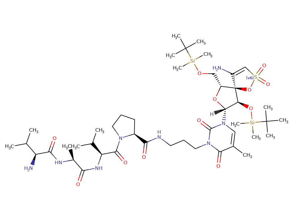 | Small molecule | 1-[(5R,6R,8R,9R)-4-amino-9-[[(1,1-dimethylethyl)dimethylsilyl]oxy]-6-[[[(1,1-dimethylethyl)dimethylsilyl]oxy]methyl]-2,2-dioxido-1,7-dioxa-2-thiaspiro[4.4]non-3-en-8-yl]-3-(3-aminopropyl)-5-methyl-2,4(1H,3H)-pyrimidinedione |